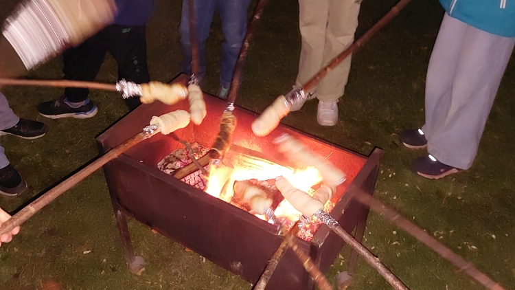 Das Stockbrotbacken war sehr interessant, doch diesmal ist kein Stück verbrannt.